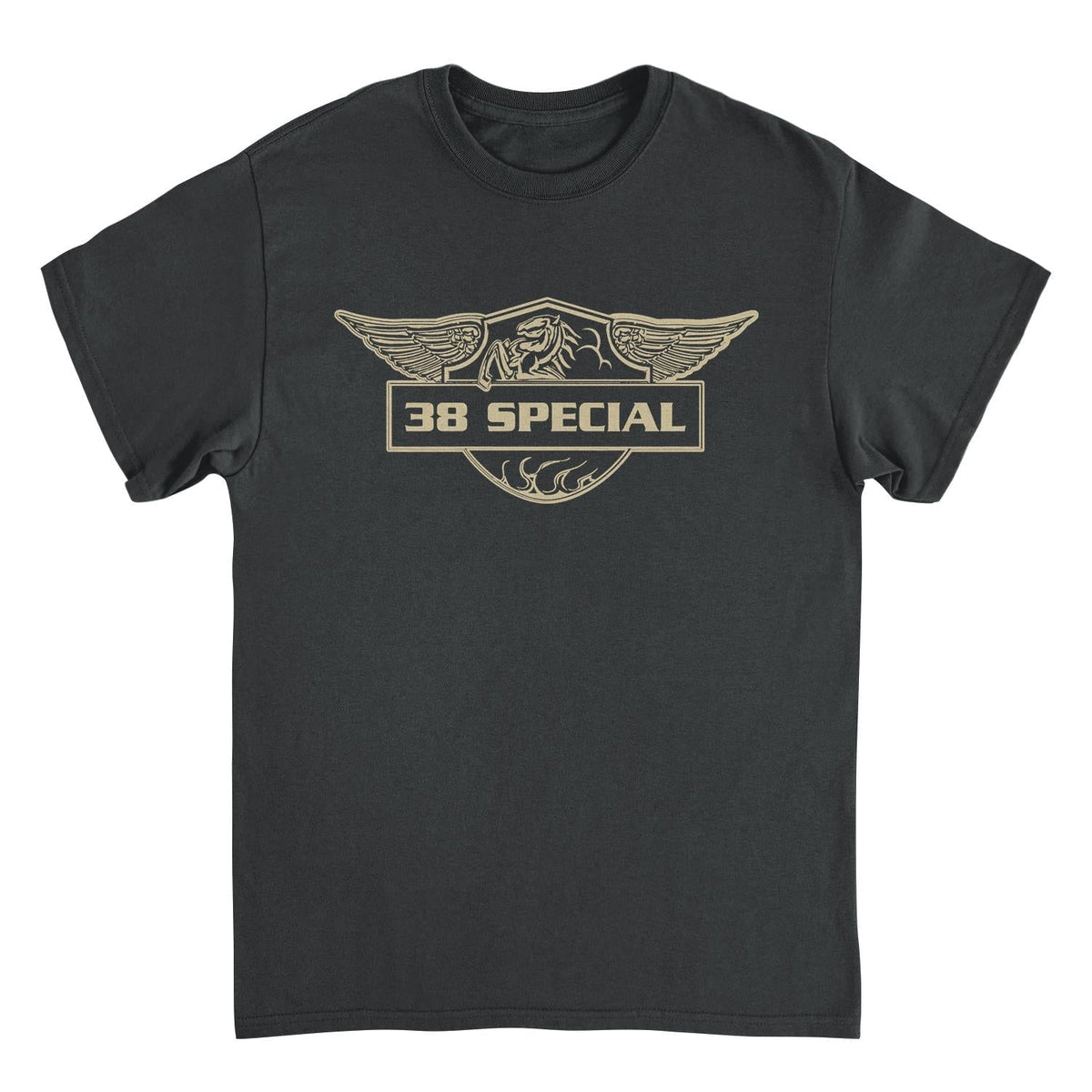 Our 38 Special t-shirt collection features iconic logos and graphic tees from the band. Each shirt is a standard-fit, 100% cotton tee with a tear-away tag for added comfort. Taped neck and shoulders adds comfort for everyday wear. Officially licensed merchandise from icons in the classic rock world!