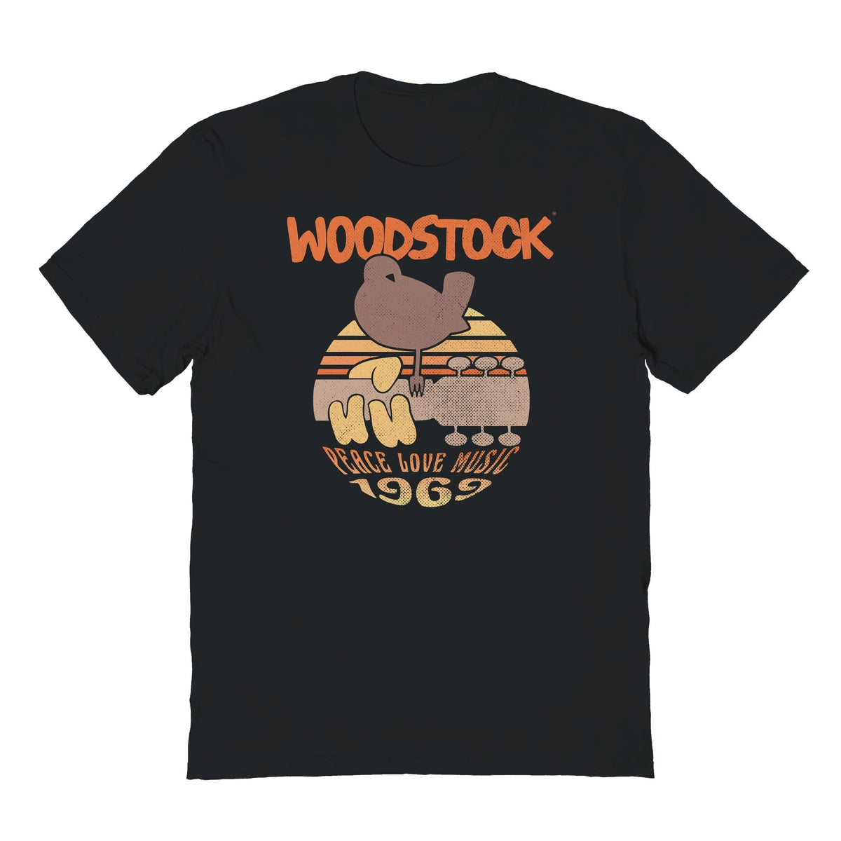 - Officially licensed Woodstock graphic t-shirt with front print.
