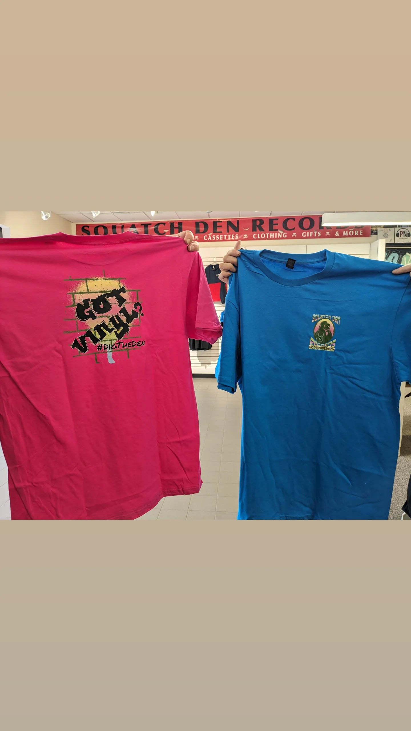 Show your support of the Squatch Den Records with one of our spring 2024 tshirts available in these loud colors.